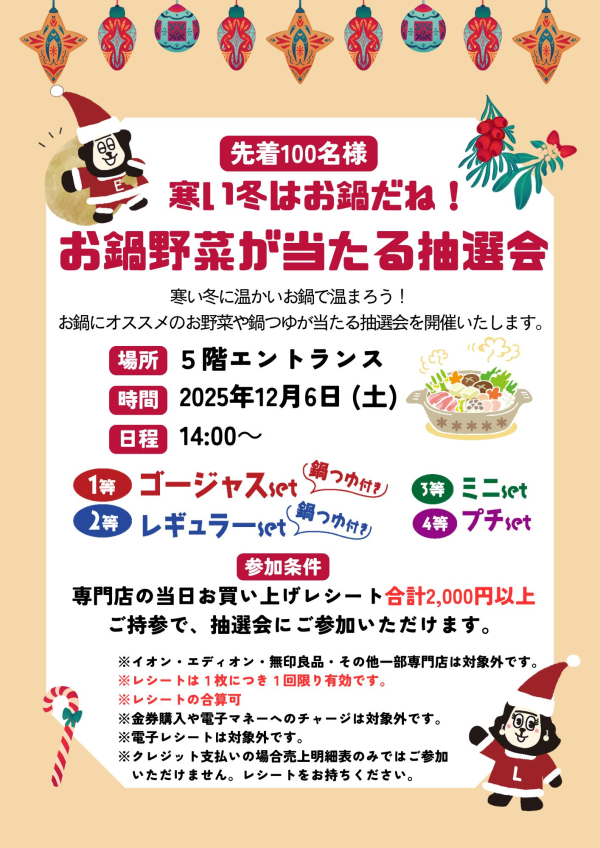 ~寒い冬はお鍋だね!~お鍋野菜が当たる抽選会